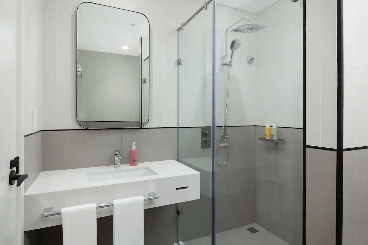Our ultramodern glass bathroom is equipped with hairdryer, magnifying shaving and make up mirror as well as all the amenities you could possible need during your stay.