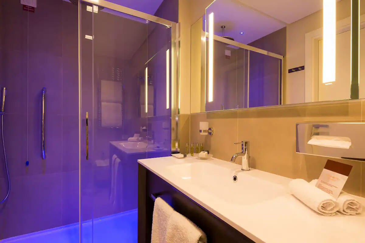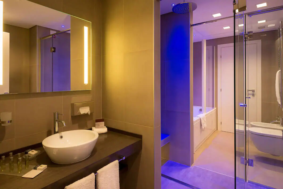 Our ultramodern glass bathroom is equipped with hairdryer, magnifying shaving and make up mirror as well as all the amenities you could possible need during your stay.
