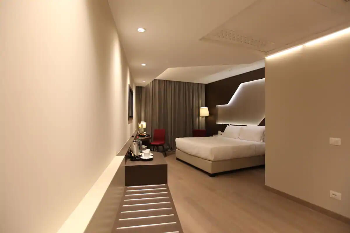 Junior Suite comprises of 1 Double Bed or 2 Twin Beds, 2 Bedside Tables, a Desk & Chair. The room is furnished with wall to wall carpeting, trendy furnishings and a balcony.